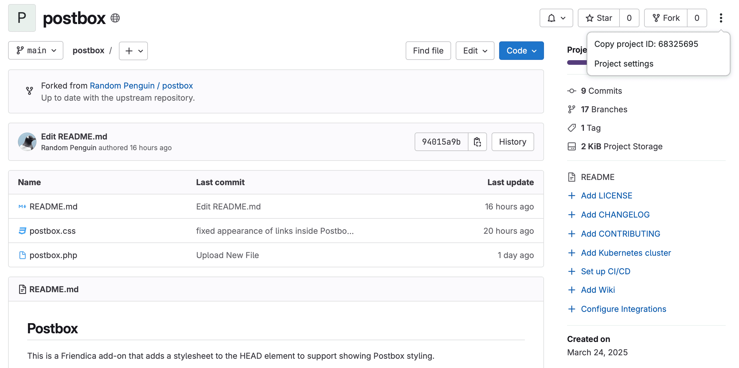 Navigate to the main page of the repository you want to configure the integration for. On the top left next to the "Fork" button, you will see three dots. Click on those three dots, and click on "Copy project ID". This will copy the GitLab Project ID to your clipboard.